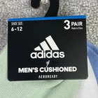 The Adidas Men's Aeroready No Show Socks come in a pack of 3 pairs, designed for shoe sizes 6-12. These athletic socks feature a solid multicolor design with the Adidas logo, suitable for casual or workwear occasions. Made of polyester, spandex, and cotton, they offer cushioning, moisture-wicking, and all-season wearability. With a no-show length and full toe style, these socks are ideal for sports activities like gym training, walking, cross-training, basketball, and running. Machine washable for easy care, they are a versatile and comfortable choice for men's everyday wear.