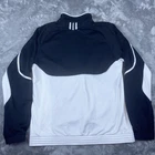 Classic sportcore aesthetic adidas track jacket blending retro track style with modern streetwear energy for everyday athletic or casual wear. Lightweight mesh performance fabric supports movement and comfort Full zip front allows versatile warm-up or layering wear Contrast white piping delivers vintage track inspiration Stand collar adds structured athletic definition Pairs easily with joggers sneakers denim or training pants Preowned – Excellent Fabric maintains strong integrity with smooth mesh texture and intact construction. Color listed as black and white may appear slightly different depending on lighting. Pit to pit flat 24 in Length shoulder to hem 31 in Sleeve length 35.5 in All measurements are approximate and may differ slightly than tags. See photos. Materials: Body 100% Polyester NoDealLeftBehind is proud to offer this piece. Questions always welcome. Follow NoDealLeftBehind for new finds and fresh listings added regularly. #adidasjacket #trackjacket #sportcore #athleisure #y2kstyle athletic, streetwear, retro adidas mens track jacket full zip black white retro athletic sportcore y2k warm up training streetwear polyester mesh zip up