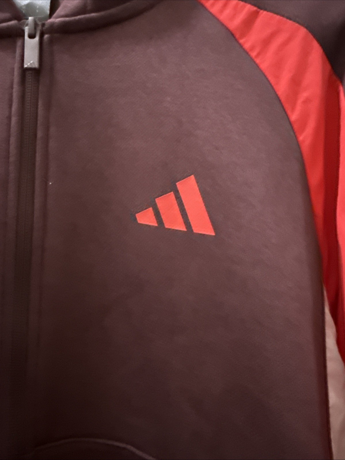 The Adidas Men’s Full Zip Hoodie in size L is a stylish and comfortable sweatshirt in a burgundy red color with a colorblock logo. Made of polyester, this long sleeve hoodie is machine washable, making it easy to care for. The hoodie features a hood, making it perfect for the winter, fall, and spring seasons. With its sporty design and athleisure style, this hoodie is ideal for gym and training activities. The Adidas brand logo adds a touch of athletic flair to this classic and versatile piece.