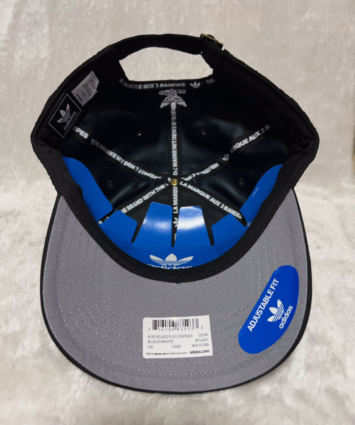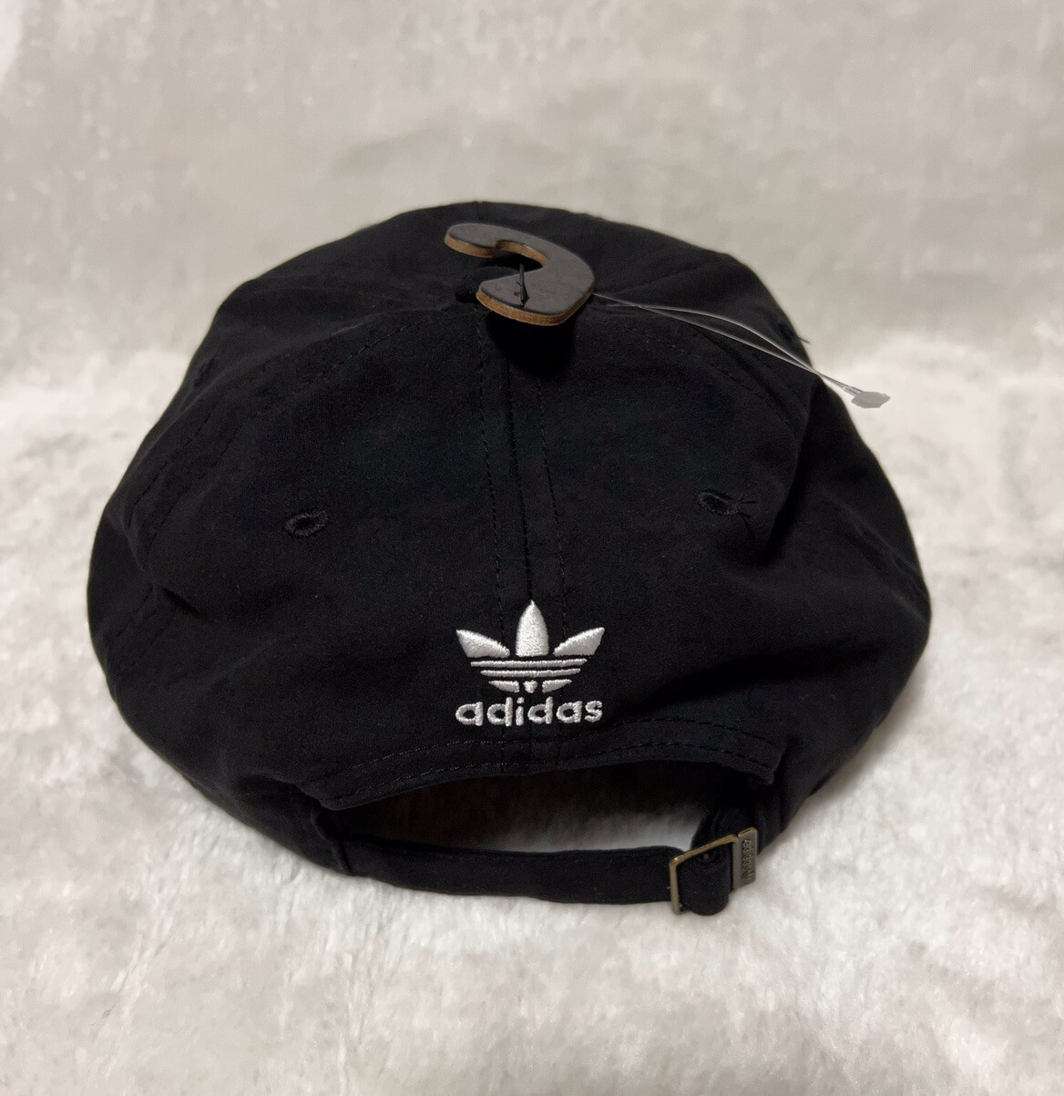 NEW Adidas Mens Relaxed Strapback Micro Suede Black Cap White Trefoil Logo.