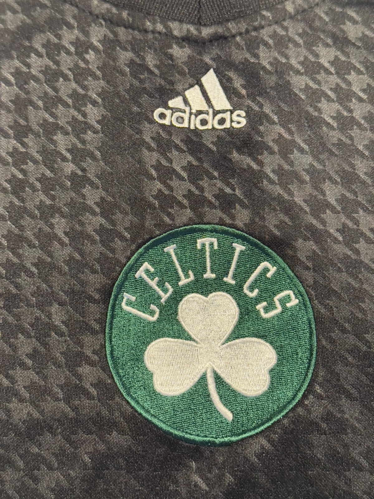 Great condition NBA Authentics Adidas Boston Celtics warmup/practice shoot around jersey with unique design, retro Celtics logo, and NBA patch on shoulder.