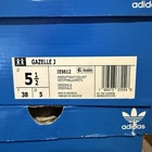 The Adidas Originals Gazelle Green White IE5612 GS Kids Unisex Sz 5.5/ Womens 7 is a stylish and versatile sneaker suitable for a variety of occasions. Featuring a classic low top design and lace-up closure, this shoe offers comfort and a secure fit. The green and white color scheme with metallic gold accents adds a fun and sporty touch to any outfit. Made with cushioned and lightweight materials, this athletic shoe is perfect for activities like gym training, walking, and running. The rubber outsole provides durability and traction, making it a practical choice for everyday wear in all seasons.