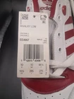 They are new but have scuff marks on them. On the tongue, one of the Adidas tags has some faint red bleed through. I'll be more than happy to answer any questions ot take more photos. Thanks