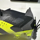 The Adidas Predator Accuracy Injection1 Low FG Mens Size 10 Soccer Cleats (Style Code: IG0782) are a new and stylish option for athletic men. These lace-up cleats are designed for soccer and football, featuring a lightweight and breathable construction with arch support and cushioning for comfort. The black color and solid pattern make them versatile for all seasons, while the waterproof and moisture-wicking features ensure they stay dry during intense games. Made with high-quality materials, including polyester, nylon, and synthetic leather, these limited edition cleats are a must-have for any outdoor sports enthusiast.