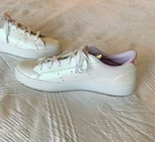 Adidas SLEEK White leather with iridescent vinyl details at shoe tongue / back & logo at side Original shoelaces with transparent purple tips Sz 9.5 Hardly worn
