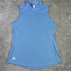Stay stylish and comfortable with this Adidas women's blue sleeveless top. Perfect for workouts or casual wear. New with tags. Size medium. Blue. Lightweight. Mock neck.