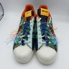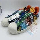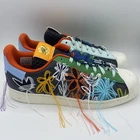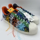 Elevate your sneaker game with the Adidas Superstar x Sean Wotherspoon Superearth in GX3823. This multicolor patchwork shoe features a lace-up closure, low-top shaft style, and standard shoe width. It's made of leather upper material, with fabric lining and foam insole for cushioned comfort. The rubber outsole offers moderate cushioning level and lightweight feel, perfect for walking, school, and everyday lifestyle wear. This 2021 release shoe is a must-have for Adidas Originals collectors and fashion enthusiasts alike. Its Superearth theme and quirky silhouette add a unique touch to any casual or activewear outfit. This shoe is available in US Men's Size 10.6 UK 10, EU 44 2/3 and is not signed or handmade. Get ready to make a statement with this Adidas Superstar x Sean Wotherspoon Superearth shoe!