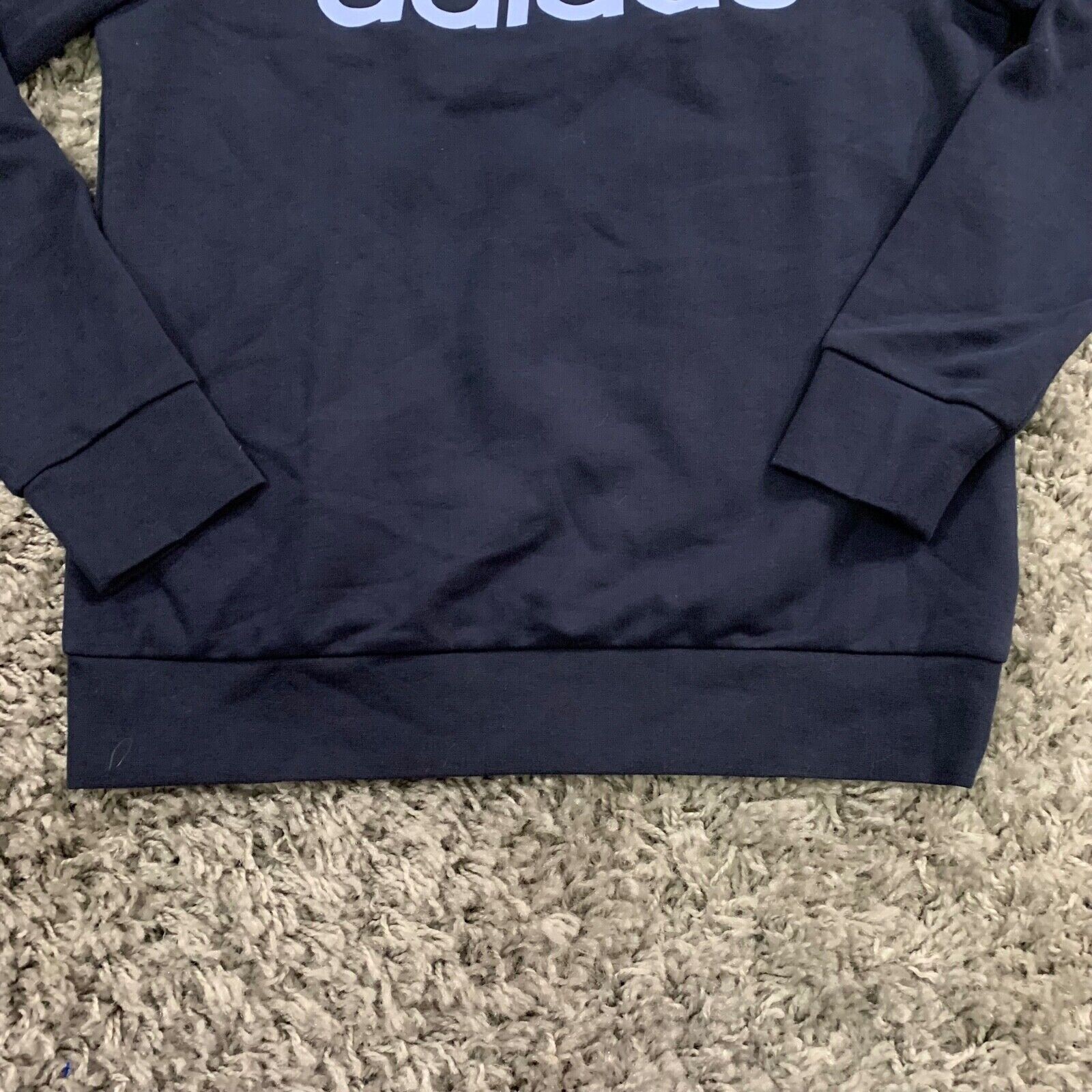 Sku# 10967 Adidas Sweater Women's Medium Navy Blue Logo Spelled Out Crew Neck Pullover Armpit to Armpit Measures 19", Length from collar to hem 25" This item is used, therefore the sizing may differ from the tag. Please refer to the measurements for more accurate sizing of the item. U S A Seller Fast Shipping Combined Shipping Available 100% authenticity guaranteed Our items are all carefully examined, measured, photographed and stored in a smoke free environment. All items cleaned per eBay standards.