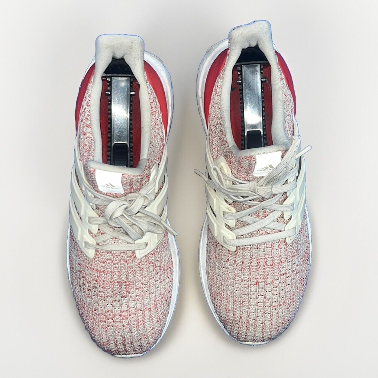 Step up your game with these Adidas UltraBoost 4.0 sneakers. Designed for both men and women, these athletic shoes are perfect for running, training, and casual wear. The chalk white and red colorway adds a pop of style to any outfit, while the boost technology provides ultimate comfort and support. These sneakers are made in China and feature a style code of F34034. They are not customized and are available in a UK shoe size 5 and US shoe size 5.5. The release year is 2018, and the product line is Adidas UltraBoost. Add these versatile and stylish sneakers to your collection today.