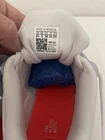 These shoes are in amazing condition. I did see a small spot on the tip of one shoe. These are very comfortable shoes providing great support for running. Please see all photos. Shoes are a size 6.5m