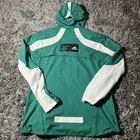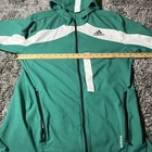 This Adidas Primeblue jacket is a versatile piece that can be worn for different occasions and seasons. It features a solid pattern and a stand-up collar style with a full zip closure. The mid-length jacket is made of polyester and has a lining material also made of polyester. The jacket is packable, making it perfect for travel, and can be easily cared for with machine washing. Its accents include a zipper and the Adidas logo. The jacket is a sample packable full zip running jacket in green, size M, suitable for regular fit. It is ideal for walking, golf, cross training, hiking, running & jogging. The jacket is part of the Adidas Primeblue product line and was made in Vietnam.
