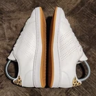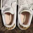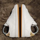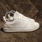 Elevate your style with these trendy Adidas Advantage sneakers for women. The low top shoes feature a sleek white design with cheetah accents, making them a chic addition to any outfit. The lace-up closure ensures a secure fit while the athletic style provides both comfort and durability. These sneakers come in a women's US size 6.5 and UK size 5. They are a part of Adidas' Advantage product line and have the style code GY7044. Perfect for any casual occasion, these shoes are a must-have for any fashionable woman's wardrobe. Please view photos for condition. adidas PRIME GREEN Made of Recycled Materials.