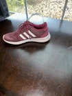 Elevate your activewear game with these Adidas Cloudfoam Plus sneakers in a vibrant pink hue. These lace-up trainers feature a low-top shoe shaft style and a mesh upper material that ensures comfort during walking or casual wear. The rubber outsole material provides traction and durability, making them perfect for a year-old pair of sneakers. The striped pattern and colorful theme add a touch of style to these sneakers, which are suitable for both casual and athletic occasions. With a UK shoe size of 6 and a US shoe size of 7.5, these sneakers are perfect for women who prefer a comfortable yet stylish pair of trainers. Get your hands on these Adidas Cloudfoam Plus sneakers and upgrade your sneaker collection today.