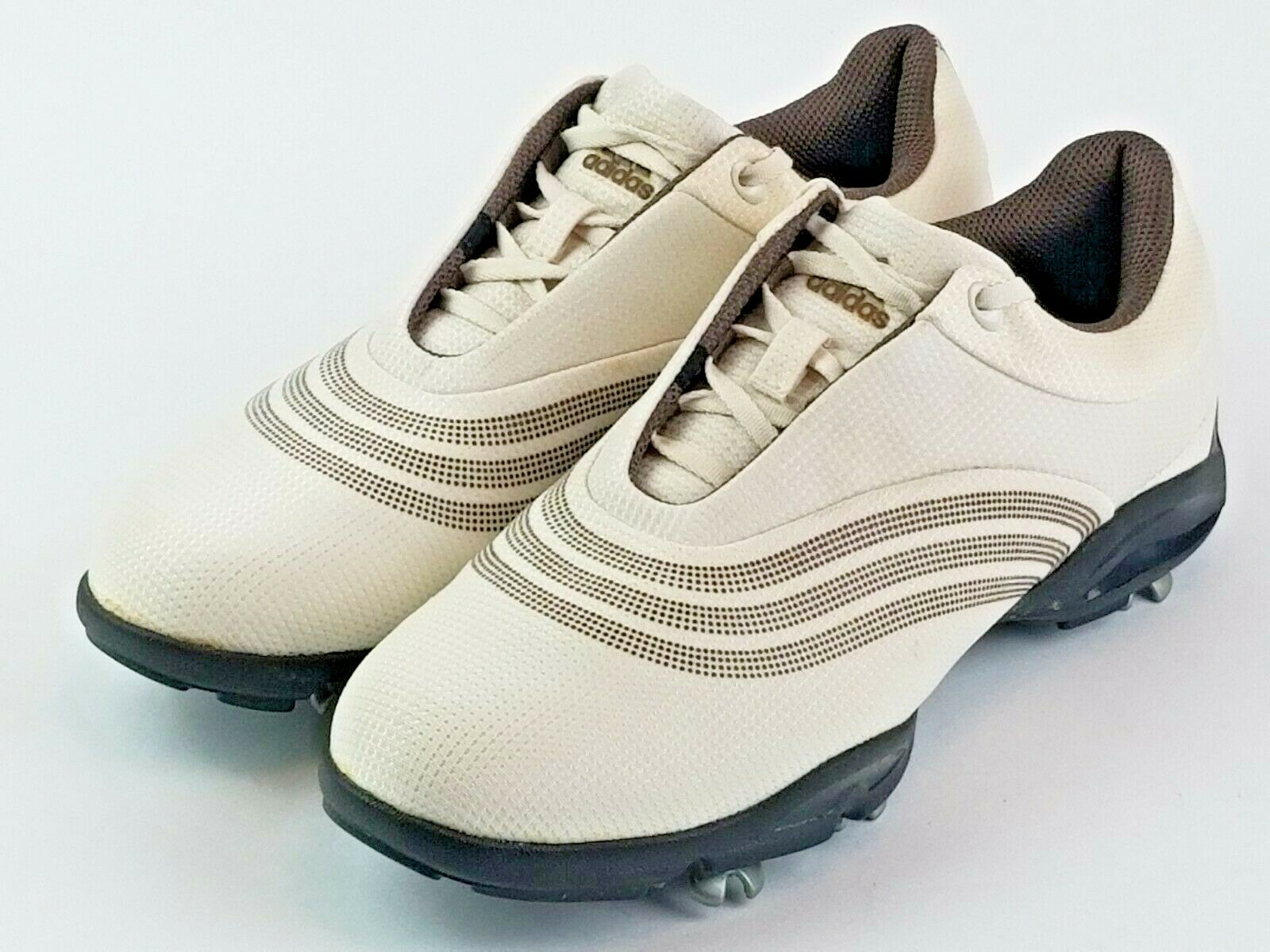 Adidas Women's Fitfoam Z-Traxion Cream/Brown Golf Shoes 791003 Size 7. These shoes have been well taken care of and appear to be new or only worn once please see pictures for more details. Very nice Adidas golf shoes with great technological strides to take your game higher.