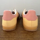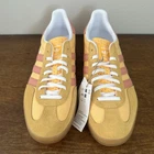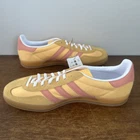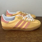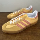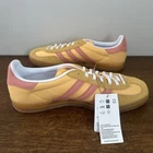 Step up your shoe game with these yellow and pink adidas Gazelle sneakers. Made with premium suede upper material, these sneakers are both stylish and comfortable. The athletic style code IE2959 makes them perfect for indoor and outdoor activities. These women's size 11 sneakers are part of the popular adidas Gazelle product line and feature the iconic three stripes logo. With a release year of 2024, you can be sure to have a trendy and modern addition to your shoe collection. Don't miss out on the chance to own these stylish and versatile adidas Gazelle sneakers. New without box