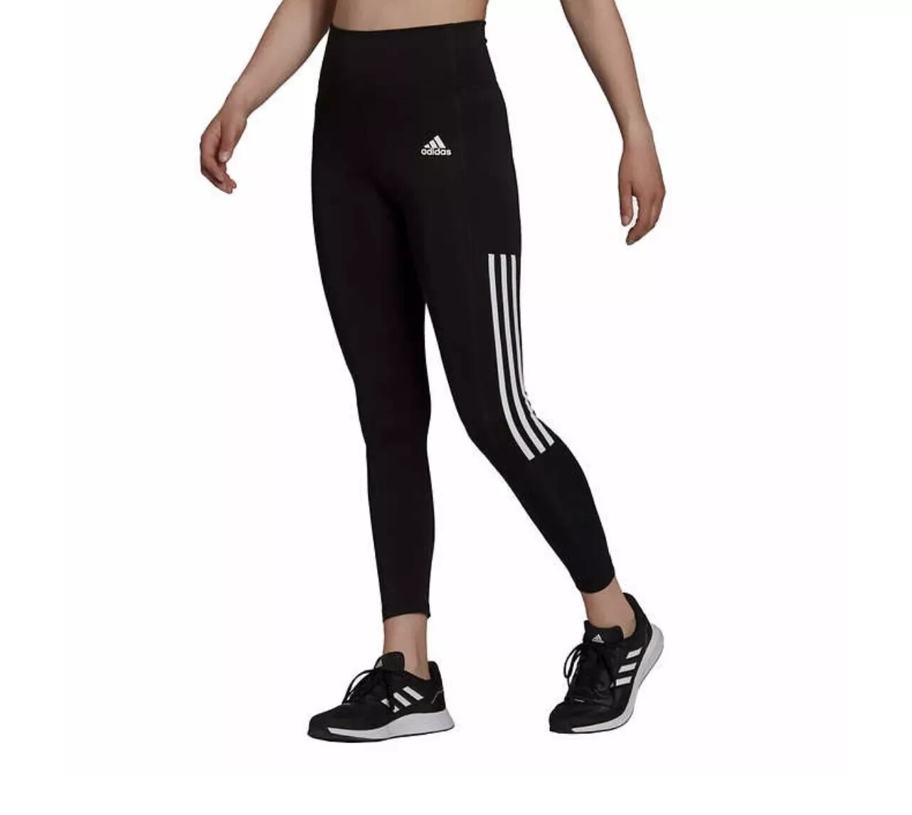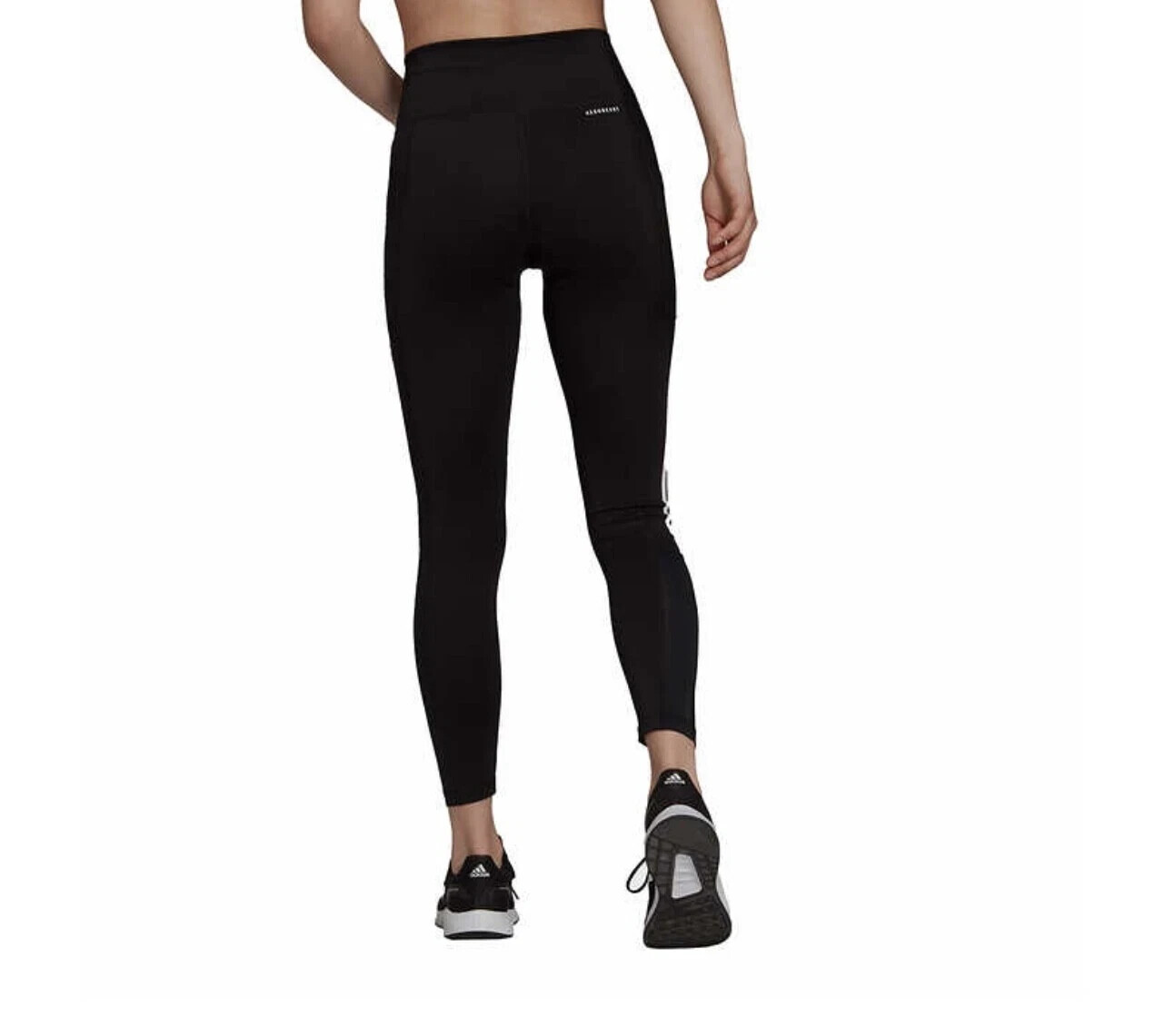 Adidas Women's 7/8 Style High Rise Tight Fit Leggings Color: Black / White Size: Small Content: 89% Polyester / 11% Spandex