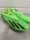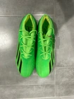 Elevate your soccer game with the Adidas X Speedportal .1 SG Game Data Pack sneakers. These stylish and comfortable sneakers feature a green solid pattern with the iconic Adidas logo and .1 Speedportal branding. The shoes have a low top shoe shaft style and are made with Speedskin upper material and polyurethane outsole material for durability and comfort. The sneakers are available in US shoe size 7 and UK shoe size 6.5, with a standard shoe width. They are perfect for activewear and are suitable for summer, fall, and spring seasons. The shoes come with cushioned and comfortable features, making them ideal for soccer players. The Adidas X Speedportal .1 SG Game Data Pack sneakers are a must-have for anyone who loves soccer and wants to elevate their game. **RETAIL $250**