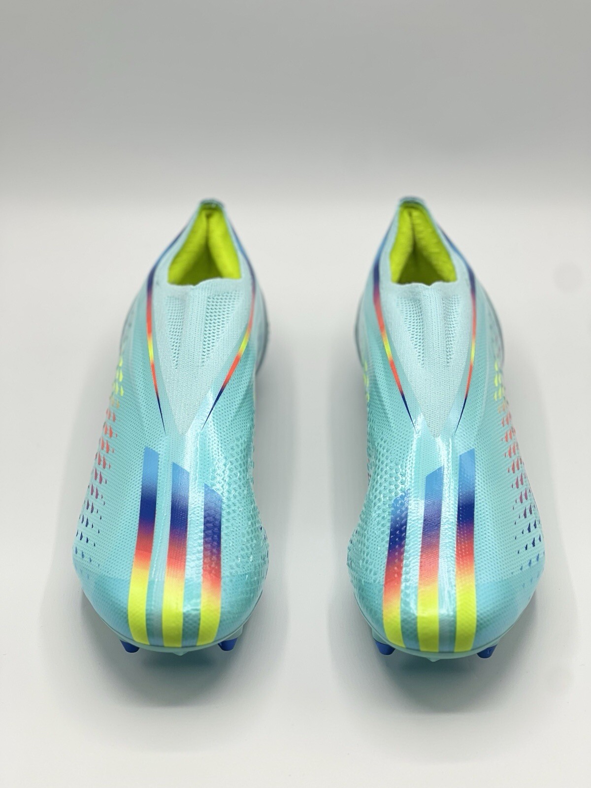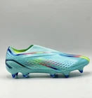 Al Rihla Pack Clear Aqua Elevate your game with these limited edition Adidas X Speedportal+ SG Laceless soccer cleats. Designed for men's US size 9.5 and women's US size 10.5, these cleats feature a solid blue color and a sports theme. The slip-on and pull-on closure makes it easy to wear, while the cushioned and lightweight design provides comfort and performance. These Adidas X Speedportal+ SG cleats are perfect for gym and training, school, soccer, and running and jogging. The metal cleat type offers traction and stability on the field, while the synthetic upper material ensures durability. Don't miss out on this opportunity to enhance your athletic performance.