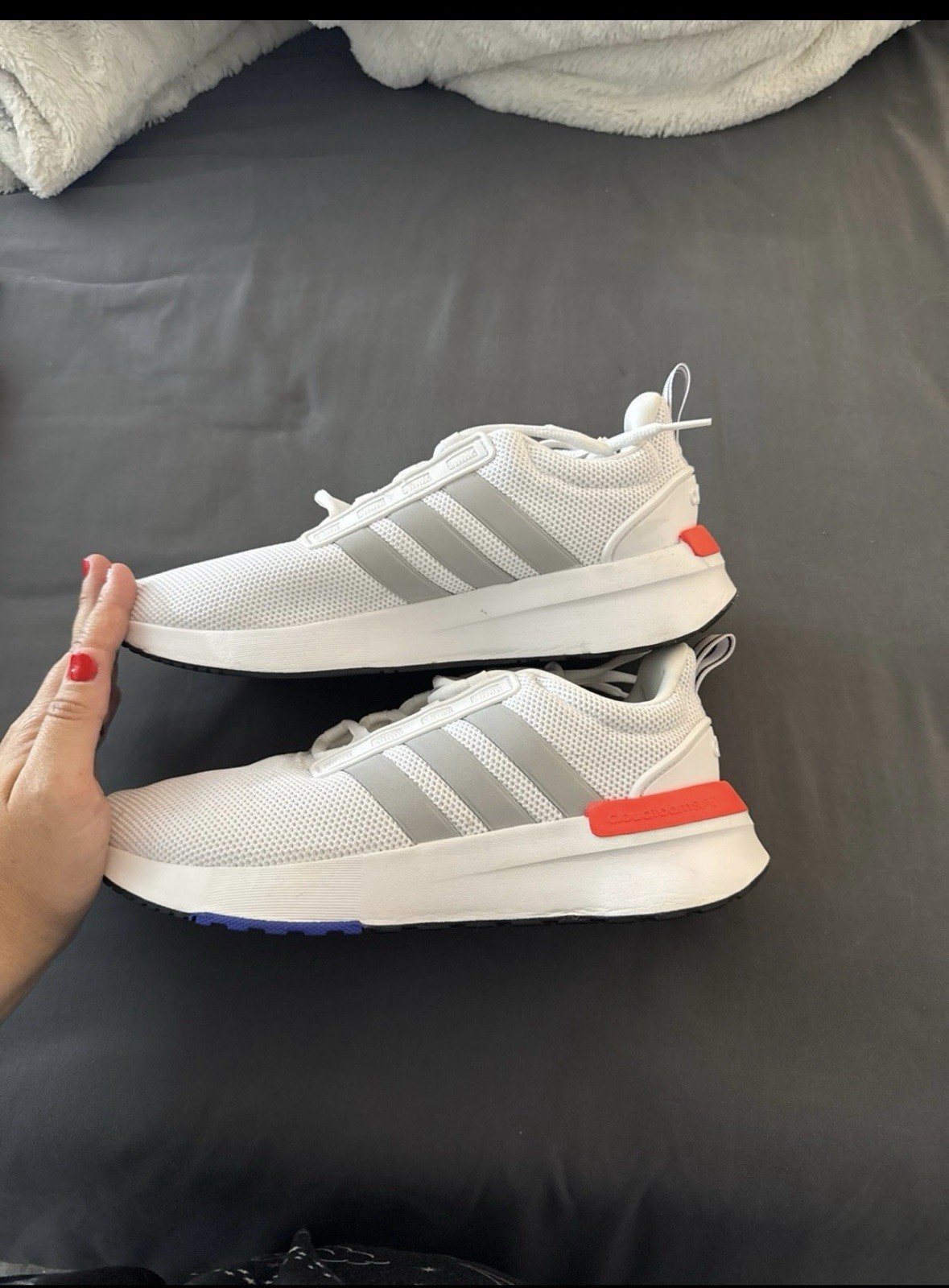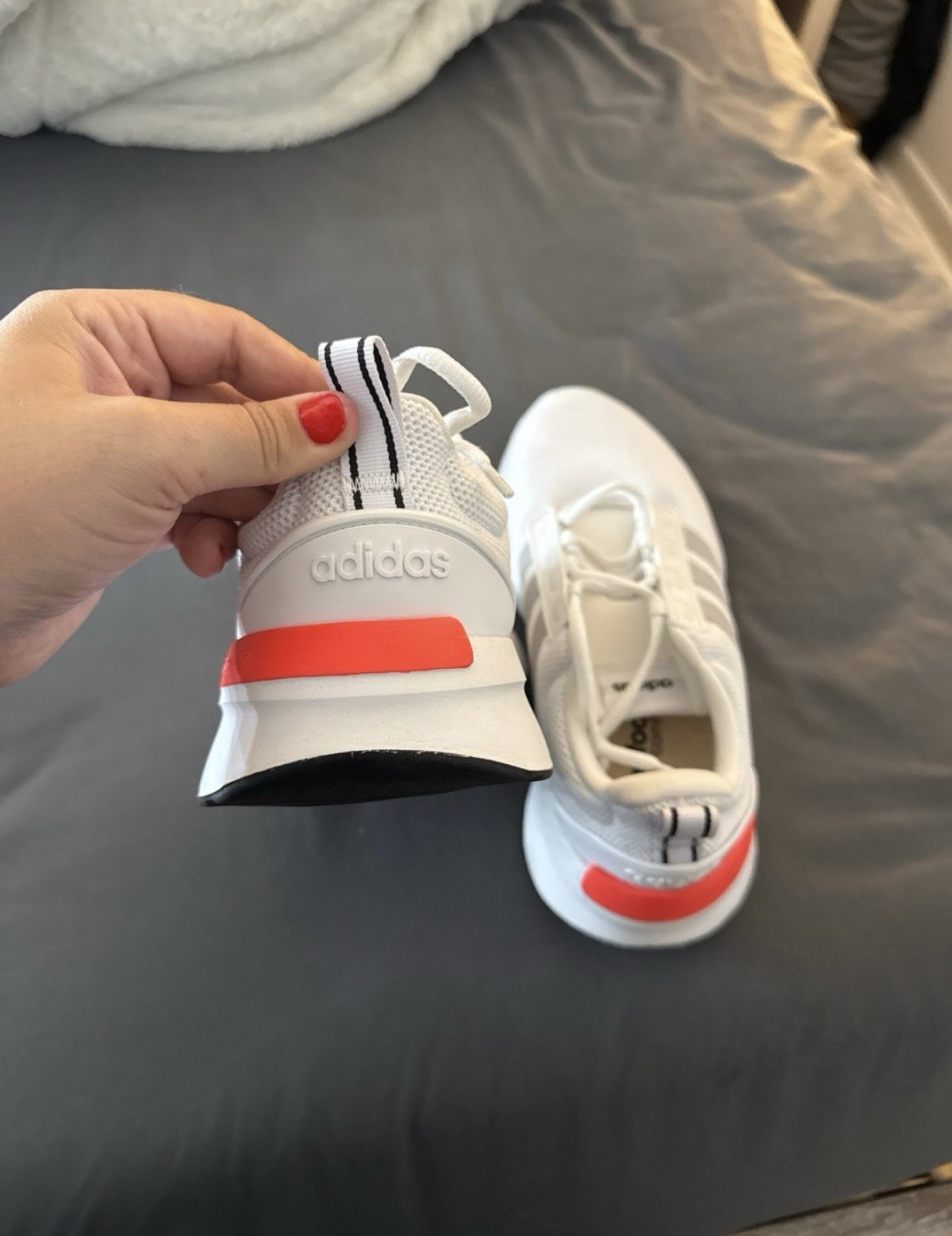The Adidas Cloud Foam Super in White/Grey and Orange is a stylish and comfortable athletic sneaker designed for women. This shoe, with a US size of 8.5, features a foam insole material and belongs to the Adidas Cloudfoam product line. Made in Indonesia, this sneaker is not vintage and is not customized, making it a versatile and trendy choice for everyday wear or workouts. The signature Adidas branding, along with the unique color combination, adds a touch of style to this classic sneaker model.