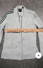 The product is a stylish Adidas x Ivy Park light green suit jacket blazer in women's size M. This regular fit blazer features long sleeves and is designed with accents like Adidas traditional 3 straps. The light green color adds a fresh and trendy touch to the classic blazer silhouette, making it a versatile addition to any woman's wardrobe. CONDITION IS PRE-OWNED NORMAL WEAR.