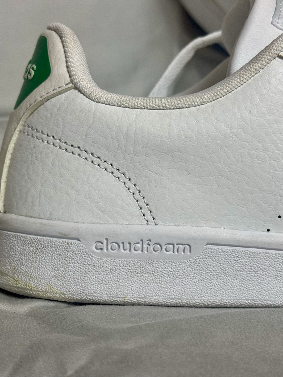 The product is a men's adidas Stan Smith sneaker in white color, size 10.5 UK and 11 US. It features cloud foam technology for comfort and style. Ideal for athletic use, this iconic adidas model offers a classic look with modern cushioning. Only worn one time. fit was too tight and I normally wear size 11.