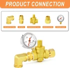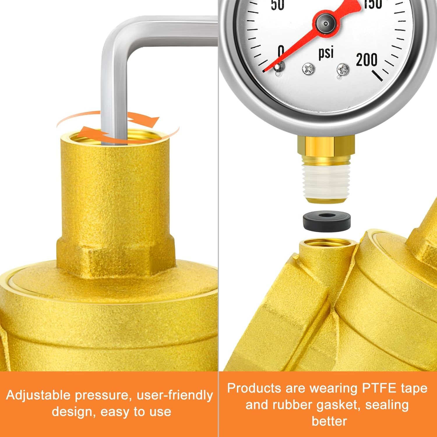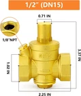 【Feature】Control water pressure and protect equipment and pipes. 【Filter design】Stainless steel filter, can filter impurities, protect the product is not easy to damage. 【Easy to adjust】The pressure can be reduced by counterclockwise rotation and increased by clockwise rotation. 【Maximum Working Pressure】232PSI. 【Applications】Widely used in RV Camper Travel,Water Heater And Solar Product Description Pressure Relief Valve 1/2" DN15 Pressure Regulator Adjustable Pressure reducing valve is a device used to adjust gas or liquid pressure, by adjusting the valve opening to control the outlet pressure, can effectively reduce the pressure. The video showcases the product in use. The video guides you through product setup. The video compares multiple products. The video shows the product being unpacked. Temperature Range Premium brass can withstand up to 140°F. Maximum Pressure Made of high-quality brass, good toughness, strong impact resistance, and maximum working pressure of 232psi. High Quality The exhaust valve is crafted from brass, it has corrosion resistance, high-temperature ductility, and other distinctive features. Easy Use Widely used in RV Camper Travel,Water Heater And Solar. Simple Packaging The package is light and convenient Easy to transport and carry Beautiful and durable package Gasher is a professional manufacturer of brass fitting and air fittings. Specialized in manufacturing and designing air fittings and brass fitting, Gasher has worked hard to earn and maintain the trust of our customers by premium products. More Product Add to Cart Add to Cart Add to Cart Add to Cart Add to Cart Customer Reviews 4.0 out of 5 stars 8 4.6 out of 5 stars 869 4.3 out of 5 stars 464 4.5 out of 5 stars 441 4.3 out of 5 stars 464 4.2 out of 5 stars 39 Price $15.99 $ 15 . 99 $13.49 $ 13 . 49 — $13.49 $ 13 . 49 $10.99 $ 10 . 99 $9.99 $ 9 . 99 Size 1/2" 1/4" NPT 1/4" NPT 1/4" NPT x 1/4" NPT 1/4" NPT 1/2" NPT Pressure 232PSI 150PSI 150PSI 150PSI 150PSI 150PSI Material Brass Brass Brass Brass Brass Brass Temperature 140 degrees F -65 to 250 degrees F -65 to 250 degrees F -65 to 250 degrees F -65 to 250 degrees F -65 to 250 degrees F Include 1Pcs 3Pcs 1Pcs 6Pcs 3Pcs 2Pcs