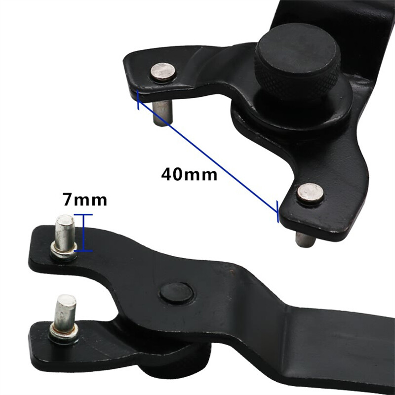 Features: Good for disassembly angle grinder, marble machine, etc. Adjustable angle design, maximizing adapt to different machines. Adjustable distance: about 8-50 mm/0.31"-1.97". Easy twist knob adjustment. Fits grinder hubs from 3/8" - 1-1/16" in size. Over all size: 7-1/2" Cushioned grip. Specifications: Material: Cemented Carbide Color: blue black Size: (Approx) 200mm, pin height x 9mm Package Included: 1 PC x Pin Spanner Note: 1. Due to the light and screen difference, the item's color may be slightly different from the pictures. 2. Please allow 0.5-2 cm differences due to manual measurement.