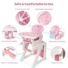 eBay Product Description Sejoy 3-in-1 baby high chair has a multi-function design that it is not only a highchair, but also can be converted into a booster chair or table and chair set. This multi-function baby high chair is suitable for ages from 6 months to 6 years old. It has a user-friendly design, the seat back can be adjusted in 3 positions, and the distance between the tray and the seat back can be adjusted to 3 different sizes to meet the needs of different age groups. Tray is dishwasher-safe and can be removed with one hand to make it easy for feedings, Keep baby safe and comfortable.With a sturdy and durable material that baby high chair ensures safety and ease of use. 3-in-1 Design Removable Double Trays 5-Point Harness Belt Adjustable Backrest in 3 Angles Removable & Washable Cushion Wide Base & Anti-Tip Support Feet Stable Structure Safe Material Easy to install Package Includes: 1 x 3 in 1 Baby High Chair 1 x Instruction Specifications: Material: PP, PE, Sponge Color:Pink Suitable for age : from 6 months to 6 years Product Dimension:19.7×21.7×40.2 in (L×W×H) Chair Size:14.6×17.7×26.4 in (L×W×H) Table Size:19.7×21.7×21.7 in (L×W×H) Product Weight :16.53 lbs Features:Adjustable Height, Removable Tray, Seat Cushion, With 5-Point Harness Belt, Removable & Washable, Stable Structure, With Anti-Fall Safety Baffle, Easy to Assemble Convertible baby high chair, can be used as kids table and chair set, or toddler booster seat. Removable top tray with cup holders and cutlery holder, ideal for easy to clean food debris Keep baby safe and comfortable with 5-point safety restraint system 3 position adjustable front tray, 3 position, reclining, adjustable seat The cushions are soft, skin-friendly and washable to protect your baby's skin from harm Clean with a damp cloth and mild soap Assembly required