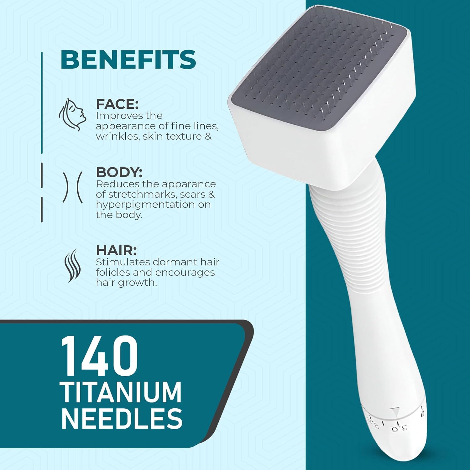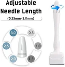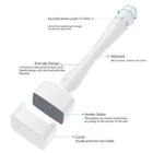 Derma Stamp 140 Pins Adjustable Needle Length Microneedle Anti-Aging Derma Microneedle Stamp promotes collagen for smoother and more radiant skin. Different from derma microneedle rollers, the derma microneedle stamp enters skin at a vertical angle to reduce skin trauma, and lessen recovery time after treatment. What's the Derma Microneedle Stamp: A derma microneedle stamp is a micro-needling device that uses small needles to generate new collagen. It can be used throughout the face and body to improves the appearance of scars, cellulite, hyperpigmentation, and even boost hair growth. The adjustable 0.25mm – 3mm medical grade stainless steel needles mean you’ll only need one device to treat a variety of skin concerns. Reason for Use Derma Microneedle Stamp: Derma microneedle stamp pierces the skin at a vertical angle with no drag, which prevents skin tearing and scarring. Adjustable 140 Needles, Medical grade stainless steel needles that are easy to disinfect, and corrosion resistant for safe use at home. Wide ergonomic handle, easier to hold and apply pressure. Can be applied to all target areas, such face, body, scalp, etc. Can be used by yourself anytime at your convenience. Good evenness and comfort. Specification: Needle Material: Grade A Stainless Steel Handle Material: ABS Needle Length: Adjustable 0.25mm- 3.0mm Number of Needles: 140 Age Group: Adult Different Lengths have Different Effect: Scalp: 0.5mm- 1.5mm Forehead: 0.25mm- 0.5mm Between Eyebrows: 0.25mm- 0.5mm Cheek Bone: 0.5mm- 0.75mm Nose: 0.3mm- 1.0mm Cheek: 0.25mm- 1.0mm Lip Area: 0.3mm- 0.5mm Stretch Mark: 1.5mm- 2.0mm Scar Mark: 1.0mm- 3.0mm How To Use: ( for face) 1. Sanitize Derma Microneedle Stamp: Start with sanitizing your microneedle stamp by letting it soak in an alcohol solution. 2. Clean & Dry Face: Remove all makeup and use a gentle cleanser. Dry the face with a clean cloth. 3. Begin Micro-Needling: Identify the areas to micro needle and firmly stamp over each area 2-3 times. 4. Apply Skin Care Ingredients: Proceed with your serums, creams, or masks for deep product absorption. Note: 1. Only for personal use, don't share with another person. 2. Skin with wounds should not use this stamp. 3. Be careful if you are allergic to metal. 4. Irritating cosmetics is forbidden before skin recovery. 5. Put where the children can't touch. Package Includes: 1x Derma Microneedle Stamp 140 Pins