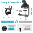 Unrivaled professionalism:2 styles universal mic holder in package are suitable for most types of microphones. Shock mount can effectively isolate most physical vibration and stand noise, it will make your broadcast or singing voice sound more pleasant and realistic. Adjustable range 43mm-47mm. The velcro to neatly route cables along the stand for an organised workspace, foam windscreen is helpful to take the sounds to a clearer and more professional level Diversity & Compatibility:microphone arm comes with a standard mic clip, two 3/8"to5/8" adapter screws and shock mount to fit most microphones such as USB condenser mic,dynamic microphones, handheld microphone and some special mics.This mic stand can work perfectly with Blue Yeti, Blue Snowball, Hyperx Quadcast,Shure SM58, etc Upgraded Desktop Mounting Clip:The redesigned desktop clip has a wider grip opening that allows it to attach to any desktop up to 2.7 inches/7 cm thick, fits most desktops and includes a headphone hook for easy headphone storage Durable & Stronger:Mic Stand is made of high quality alloy steel and double suspension springs design makes the microphone more stable,reduce shaking, sinking and noise effectively,prolong the life span of the stand .The painted steel can resists years of chips and scratches to stay looking new. (Max Support Weight is 4.4 lbs/2kg) Packaging Contents:1xMicrophone arm stand,1xReinforced metal base,1x Shock mount,1xMicrophone clip,1xWindscreen,1xPop Filter,5xVelcro,2xAdapter screws.If you have any questions after receiving this product, please contact us in time, we will help you solve it as soon as possible Flexible & Free Position:professional mic stand all parts of the boom arm are fully adjustable. you can adjust the mic to the suitable angle or height to show your voice. The microphone stand base can rotate 360 degrees left and right,180° arm shaft for up-and-down movement and 270° metal adapter to flexible position microphones Double Layer Pop Filter: This adjustable blue yeti microphone stand features a double layer blast filter that reduces poofing, wind interference, and saliva spatter, and enhances the sound to a clearer, more professional level