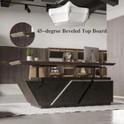 This adjustable L-shape home office computer desk is made of durable particle board and MDF materials in light wood tone with a sleek black color. It features two drawers and a right return, perfect for organizing papers and workstation essentials. The desk can be assembled with ease and comes with shelves for added storage space. With dimensions ranging from 78.7 inches to 94.5 inches in length and 29.9 inches to 41.3 inches in height, it offers flexibility and style for modern home offices or studies. This executive desk is designed for adults and adds a contemporary touch to any room.