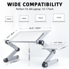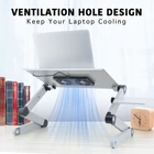 Features: 【Multiple Functions】RAINBEAN adjustable laptop table can be used as a cozy desk for bed or sofa, Writing standing desk, dinner TV serving tray, sound equipment, book holder, writing desk and tablet holder etc, meets all your different demands. 【 Heat Dissapation】 Ventilation holes could provide strong air flow to dissipate the heat from bottom of your notebook for better heat dissipation, it's more silent. Ergonomic Design】This laptop stand is designed with full control and flexibility for your convenience so that you can use your computer at the most comfortable position. It will reduce neck and shoulder stress due to hours of using your computers, benefits your health and make you free from the neck ache and shoulder pain caused by poor posture. 【Work From Home Desk】Best accessories for setting up your couch as a work station, you can get work done from the comfort of your bed too! The laptop holder allows you to use 13\'-17\' laptop and a computer mouse using on mouse pad side. With enough space, you can work comfortably. Benefits Your Health: This computer holder is designed with full control and flexibility for your at the most comfortable position. It will reduce neck and shoulder stress due to hours of using your computers, benefits your health and make you free from the neck ache and shoulder pain caused by poor posture. Specification: Weight:Approx.1.50kg Material:Aiuminum Folded Dimension:20.6x10.4x2in Package: Includes:1x Portable Laptop Desk with Fan 1 x A Mountable Mouse Tray 1 x An Instruction Manual 2 x Black Non-Slip Baffle 1 x USB cable Prohibited sales platforms: Amazon