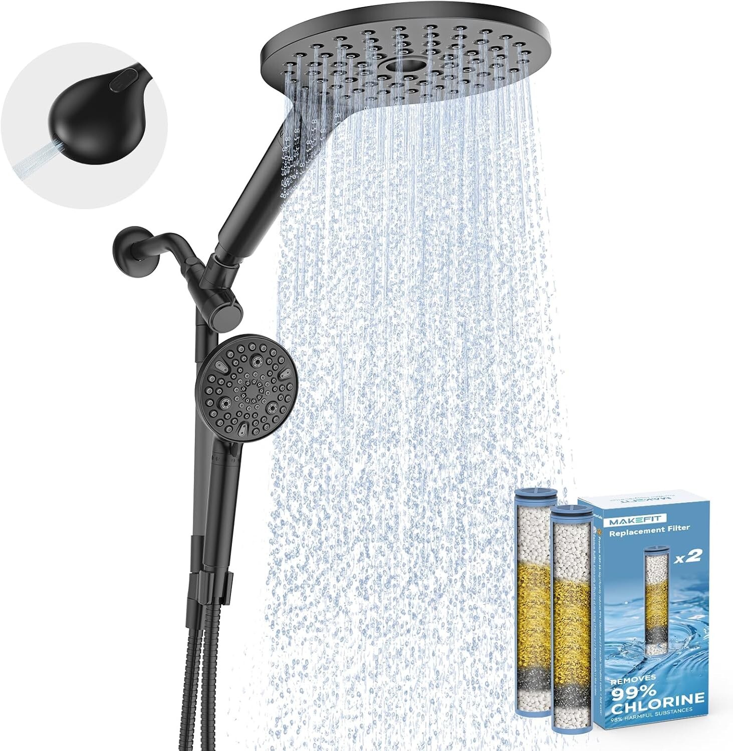 Adjustable Rainfall Shower Head & Handheld Combo - Matte Black Filtered Elegance ‹ › ‹ › ‹ › ‹ › ‹ › ‹ › ‹ › ‹ › ‹ › Adjustable Rainfall Shower Head & Handheld Combo - Matte Black Filtered Elegance Transform your daily shower routine into a luxurious spa-like experience with the Adjustable Rainfall Shower Head and Handheld Combo. Crafted with a stunning matte black finish, this exquisite duo not only enhances your shower aesthetic but also prioritizes your health and well-being. Features: Dual Filtered Handheld Shower Head: Combat dry skin and weak hair caused by hard water with an advanced filtration system, effectively removing chlorine, fluoride, heavy metals, and more. Diverse Shower Experience: Enjoy the perfect synergy of a high-pressure rainfall shower and a powerful handheld spray, delivering full-body coverage and versatility in one. Effortless Adjustability: Our innovative adjustable bar ensures secure positioning with every shower. Easily modify the angle and height without worrying about leaks or falls. Customized Showering: Tailor your experience with three different spray modes – choose between a strong massage or a soft mist, and easily switch between options via the 3-way diverter knob. Easy Installation: Benefit from universal G1/2" threads that can be attached to any standard shower arms or pipes in minutes. No plumbing experience required. Benefits: Enhances skin and hair health with effective water filtration Personalized shower options catering to your preferences Stylish and durable design that fits any bathroom décor High-quality construction ensuring longevity and performance Convenience of a sprinkler-style rain shower combined with the flexibility of a handheld sprayer Why choose our Shower Head Combo? Elevate your showering experience with our Adjustable Rainfall Shower Head & Handheld Combo. Designed with dual filtration capabilities to purify your water and enhance your skin’s vitality, this exquisite combination adapts to your showering preferences ensuring a revitalizing cleanse every time. Experience the luxury of a spa right in your home, and indulge in the moment of serenity you deserve. Don't wait to transform your daily ritual – upgrade to the ultimate shower experience with the Adjustable Rainfall Shower Head and Handheld Combo today! Shipping Free & Fast Shipping - We offer free shipping to most of the USA with a normal delivery time of 3-7 days. However, due to the current situation, additional delivery time (up to 3 weeks) may be required for some items. Alternative Carriers - We may use alternative carriers (e.g. USPS, FedEx, UPS, etc.) to ensure your package arrives safely and on time. Due to the use of multiple carriers, we are unable to provide a tracking number automatically. Handling Time - Orders are processed and shipped within 1-2 business days of receiving cleared payment. Shipping Restrictions - Shipping to Alaska, Hawaii, Puerto Rico, Guam, and other US territories may incur shipping charges or delivery restrictions. Please contact us before ordering, or your order can be refunded/cancelled. State Restrictions - There may be restrictions based on your state of purchase. For example, certain items may not be shipped to California due to state regulations. Contact for Tracking Updates - If you require tracking updates or have any concerns about the delivery of your order, please feel free to contact us, and we will be happy to assist you. Return 30-Day Hassle-Free Returns - We want you to be completely satisfied with your purchase. If you are not, you can return the item within 30 days of receiving it for a full refund or exchange. Easy Return Process - To start a return, simply contact us and we will provide you with a prepaid return shipping label and detailed instructions. Restocking Fee - There are no restocking fees for returns. However, the buyer is responsible for return shipping costs if the return is not due to a seller's error. Refund Processing Time - Refunds will be processed within 5 business days of receiving the returned item in its condition. Payment We accept all major credit cards, PayPal, and Apple Pay for your convenience. Your payment information is secure and encrypted to ensure a safe and seamless transaction. Please complete your payment within 3 days of purchase to avoid any delays in shipping. Feedback Your feedback is extremely important to us. We strive to provide the best products and customer service possible. If you are satisfied with your purchase, please take a moment to leave us a positive review. If you have any concerns or issues with your order, please contact us before leaving negative feedback. We are committed to resolving any problems and ensuring your satisfaction. Contact Us If you have any questions or concerns, please feel free to out to our customer support team. You can contact us through the eBay messaging system. We are available Monday to Friday, 9:00 am to 5:00 pm EST, and we will do our best to respond to your inquiry within 24 hours. Buy it now and enjoy a pleasant shopping experience! Item Weight: 2 kg Unit Quantity: 1 Suitable For: Shower,Steam Shower Material: Acrylic,KDF55,Calcium Sulfite,Vitamin C,Ceramic Balls Features: Adjustable Angle,Detachable Hose,High Pressure,Rainfall,Water Conservation Items Included: Hose,Diverter,Rainfall Shower Head,Handheld Shower Head,Teflon Tape,Wrench Room: Bathroom,Utility/Laundry Room Water Feed: Ceiling & Wall Fed,Ceiling Fed,Rear Wall Fed Type: Dual Shower Head Finish: Oil-Rubbed Color: Matte Black Number of Faucet Holes: 1 Number of Shower Heads: 2 Shower Head Shape: Round Item Height: 12.7 Centimeters Installation: Wall Mounted Faucet Hole Spacing: 12 in Shower Head Diameter: 8 in Minimum Pressure: 10 psi Shower Head Type: Rain Shower Style: Modern Temperature Control: Manual