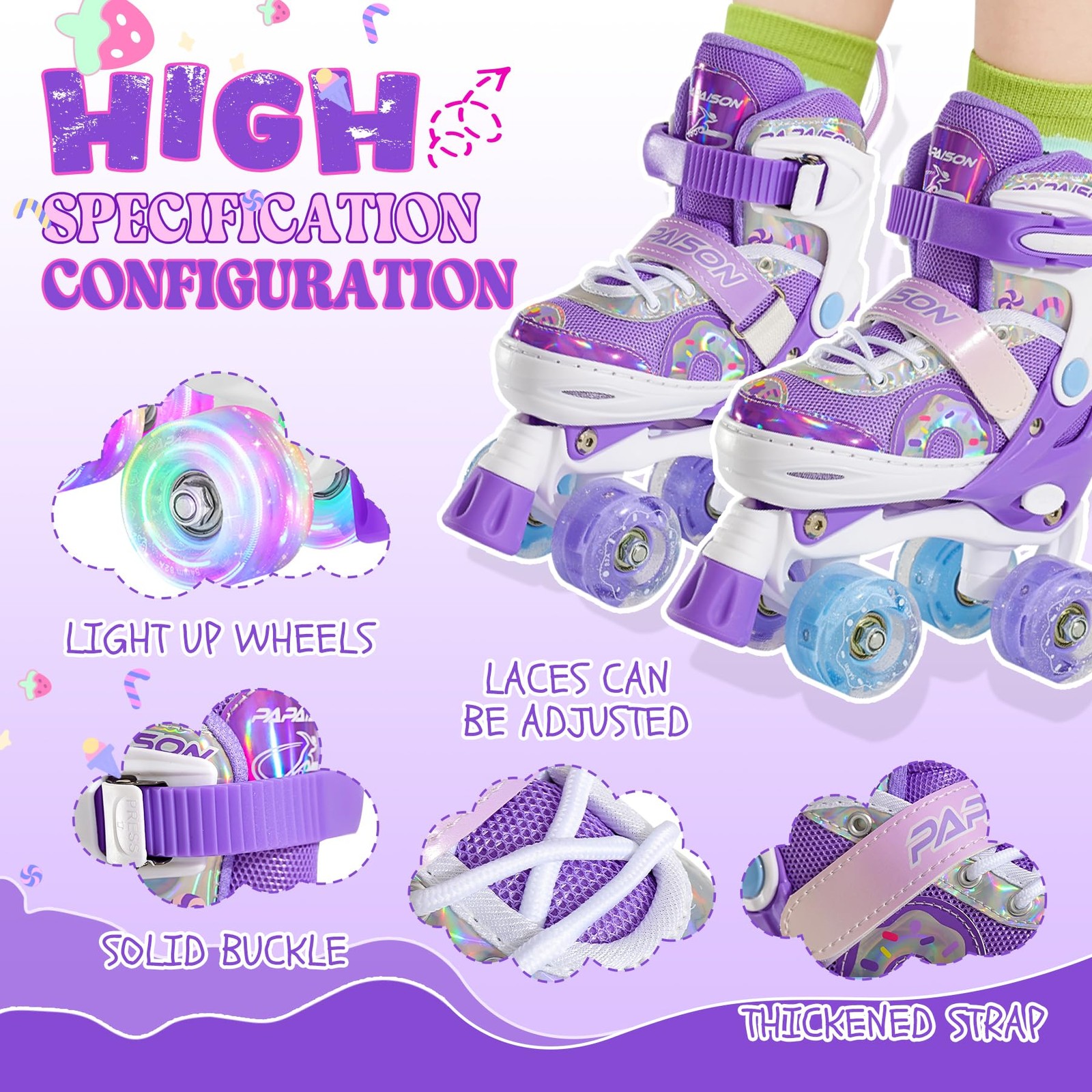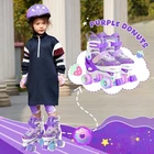 Adjustable Roller Skates for Girls Illuminating Wheels Beginners Rollerskates for Kids Toddler SIZE ADJUSTABLE - This roller skates can be with your child for a long time, there are four sizes adjustable, perfect for growing children. You can change the length of the skates by stretching or contracting it to make the size adjustable. 8 LIGHT UP WHEELS - Each pair of roller skates has 8 lighted wheels. The lighted wheels will glow at night or in a dimly lit environment, making them easier to notice and enhancing safety. Flashing wheels increase the fun and attraction of roller skating, which can better stimulate children's interest in roller skating. EXCELLENT MATERIALS - Our roller skates feature reinforced frames, 82A polyurethane wheels, and high-performance ABEC-7 bearings for better support and stability, reducing the risk of injury. Enhanced durability and performance of elasticity, shock absorption and grip improve the skating and maneuverability of the skates. SECURE FIXATION -Adjustable lace-up bar buckles secure the ankle, padded hook-and-loop straps hug the instep, and laces add additional elasticity to stabilize the tongue. These make roller skating safer and prevent foot sprains. GOOD SERVICE - This roller skate is a great gift and the most beautiful way to show your love. And our products have extremely excellent after-sales service, so that you have no worries and enjoy the fun of roller skating !