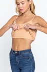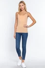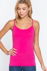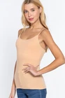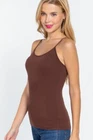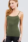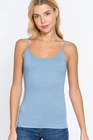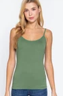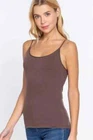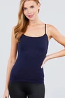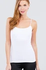 Description Cami with built in bra (unpadded). This cami is a wardrobe essential, perfect for layering under your favorite top! - Brand: Active Basics - Fabric: 95% Cotton 5% Spandex (Machine wash cold, Hang Dry) - Adjustable strap, Built in shelf bra Measurements & Fit - Length: 23" (shoulder to hem) - Chest Width: S 13" M 14" L 15" - Model is a size small Size Chart - Small: Bust 32"- 33" | Waist 26"- 27" | Hips 36"- 37" - Medium: Bust 34"- 35" | Waist 28"- 29" | Hips 38"- 39" - Large: Bust 36"- 37" | Waist 30"- 31" | Hips 40"- 41"