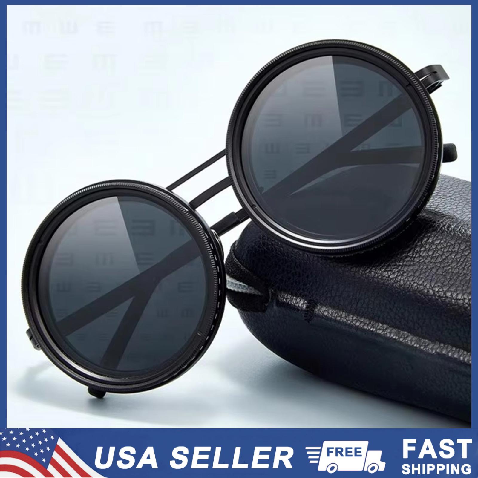 Adjustable Tint Sunglasses, 1-9 Gears Round Polarized ND Filter Lenses for Men Features 1. Levels 1-9 infinitely adjustable color tone: Levels 1-9 customizable color tone, instantly adapting to changes in lighting conditions. Reduce glare on bright beaches or dim lenses during indoor transitions to ensure optimal eye comfort and UV400 protection. 2. Polarized circular sunglasses: Featuring classic circular frames and polarized lenses, enhance your fashion taste. This pair of sunglasses combines timeless design with modern functionality, making it the perfect choice for casual outings, driving, or outdoor adventures. 3. ND9 lens technology: This lens adopts advanced ND9 filters, which can block 99% of glaring sunlight and blue light. While enjoying crystal clear vision, it can also protect the eyes from fatigue when worn for a long time. 4. Durable and versatile: This pair of sunglasses is made of lightweight TR90 frame material and scratch resistant polycarbonate lenses, which can withstand daily wear, sports, and extreme weather conditions. 5. Adjustable nose pad and frame: Using flexible nose pads and spring hinges, make your sunglasses more suitable. Specially designed for various head shapes, it can maintain safety while running, cycling, or relaxing by the pool. Specification Lens material: TAC Glasses structure: full frame Frame Material: Aluminum Magnesium Alloy Glasses Style: Round Frame Product weight: 47 g (including lenses) Package Include: 1x Sunglasses Features 1. Levels 1-9 infinitely adjustable color tone: Levels 1-9 customizable color tone, instantly adapting to changes in lighting conditions. Reduce glare on bright beaches or dim lenses during indoor transitions to ensure optimal eye comfort and UV400 protection. 2. Polarized circular sunglasses: Featuring classic circular frames and polarized lenses, enhance your fashion taste. This pair of sunglasses combines timeless design with modern functionality, making it the perfect choice for casual outings, driving, or outdoor adventures. 3. ND9 lens technology: This lens adopts advanced ND9 filters, which can block 99% of glaring sunlight and blue light. While enjoying crystal clear vision, it can also protect the eyes from fatigue when worn for a long time. 4. Durable and versatile: This pair of sunglasses is made of lightweight TR90 frame material and scratch resistant polycarbonate lenses, which can withstand daily wear, sports, and extreme weather conditions. 5. Adjustable nose pad and frame: Using flexible nose pads and spring hinges, make your sunglasses more suitable. Specially designed for various head shapes, it can maintain safety while running, cycling, or relaxing by the pool. Specification Lens material: TAC Glasses structure: full frame Frame Material: Aluminum Magnesium Alloy Glasses Style: Round Frame Product weight: 47 g (including lenses) Package Include: 1x Sunglasses