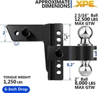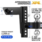 Item Description Material: Aluminum Ball Size: 2" and 2-5/16" Adjustable Height: 3" / 6"/ 8" Drop Distance (Adjusts in 1" Increments) Loading capacity: 2" Ball-8,000 LBS, 2-5/16" Ball -12,500 LBS Pin Hole Diameter: 5/8" Compatible with: Vehicles with 2 " Hitch Mounts Package Includes: Adjustable Steel Tailer Shank, Hitch Ball ( 2" And 2-5/16"), 2 Pin Lock