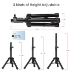 1.Adjustable Height:20inches-33inches 2.Load capacity up to 80 lbs 3.Heavy Duty Steel Construction,Weight Capacity: 1.4 lbs. 4.Includes: (1) Tripod Speaker Stands. (2) Carry bag for the stands 1.Adjustable Height:20inches-33inches(small size) 2.Load capacity up to 80 lbs 3.Heavy Duty Steel Construction,Weight Capacity: 1.4 lbs. 4.Includes: (1) Tripod Speaker Stands. (2) Carry bag for the stands 5.Can hold small speaker, recommended size of speaker under 10 inches