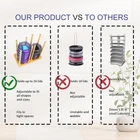 Adjustable Tumbler Lid Organizer - 9.13 x 5.13 x 7.3 inches, Bamboo Product Details Material: Bamboo Color: Bamboo Special Feature: Adjustable Tumbler Lid Organizer Number of Shelves: 1 Room Type: Kitchen Included Components: Holder Brand: VEEBELL Style: Casual Item Weight: 1.21 pounds Package Dimensions: 10.31 x 6.1 x 1.65 inches Size: 9.13 x 5.13 x 7.3 inches Special Features: Adjustable Tumbler Lid Organizer Batteries Included?: No Batteries Required?: No Material: Bamboo Color: Bamboo Special Feature: Adjustable Tumbler Lid Organizer Number of Shelves: 1 Room Type: Kitchen EASY HOME ORGANIZATION— Water bottle lid organizer let your kitchen say goodbye to the chaos of various cup lids and coffee cup lidsr. Enjoy a well-organized home where you can quickly find the lids you need, our cup lid organizer maximizes storage space and organizes your kitchen cabinets. HOLDS MULTIPLE LIDS — The largest coffee lid organizer on the market, this cup lid organizer measures 9 x 8.4 x 4.7 inches, making it the ideal solution for your kitchen cabinet organizing needs. It fits lids of all shapes and sizes, regardless of size. Including lids from YETI, RTIC, Hydro Flask, Stanley, Starbucks, and other brands. LID ORGANIZER IS EASY TO INSTALL— Simply insert the rod and wire of the lid organizer holder into the round hole position of the base and adjust as needed. The glass lid organizer features a stylish vertical design that makes full use of every inch of space in your kitchen. PREMIUM QUALITY MATERIAL—Glass lid holder is made of bamboo to ensure safety, lightweight, not easy to deform and long service life, enjoy a well-organized kitchen and house storage space. EASY HOME ORGANIZATION: Water bottle lid organizer let your kitchen say goodbye to the chaos of various cup lids and coffee cup lidsr. Enjoy a well-organized home where you can quickly find the lids you need, our cup lid organizer maximizes storage space and organizes your kitchen cabinets. HOLDS MULTIPLE LIDS: The largest coffee lid organizer on the market, this cup lid organizer measures 9 x 8.4 x 4.7 inches, making it the ideal solution for your kitchen cabinet organizing needs. It fits lids of all shapes and sizes, regardless of size. Including lids from YETI, RTIC, Hydro Flask, Stanley, Starbucks, and other brands. LID ORGANIZER IS EASY TO INSTALL: Simply insert the rod and wire of the lid organizer holder into the round hole position of the base and adjust as needed. The glass lid organizer features a stylish vertical design that makes full use of every inch of space in your kitchen. PREMIUM QUALITY MATERIAL:Glass lid holder is made of bamboo to ensure safety, lightweight, not easy to deform and long service life, enjoy a well-organized kitchen and house storage space.
