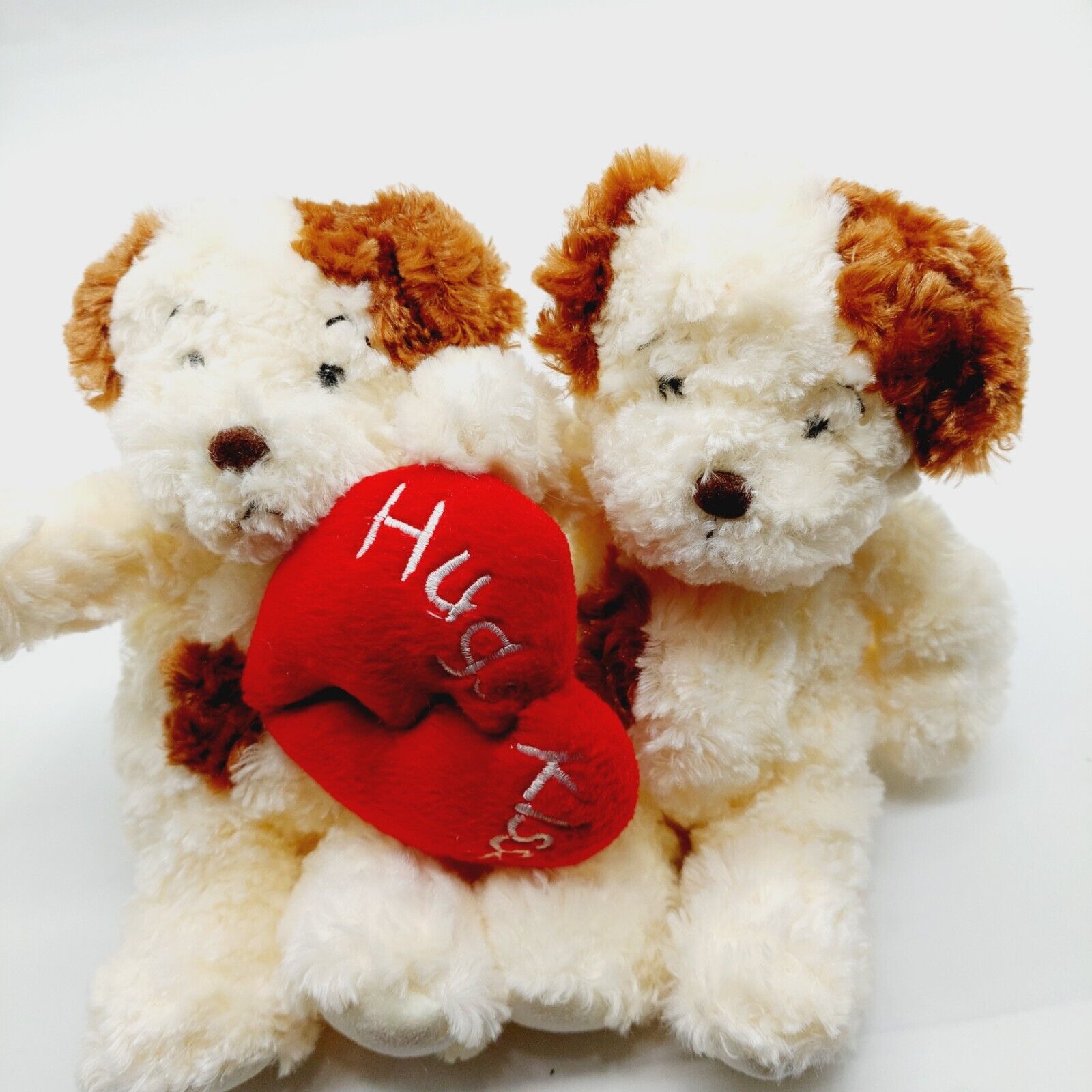 Aurora Dogs Puppies Heart Hugs & Kisses Cream Brown 8" Plush Stuffed Valentines