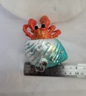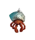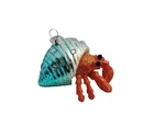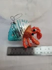 Add a touch of whimsical charm to your holiday decor with this adorable Hermit Crab ornament, beautifully made of hand blown glass. He's depicted covered in beach glitter and crawling with his jewel encrusted teal-colored shell. He's sure to add a touch of the ocean's tranquility to your tree, or he can be displayed free standing to enhance your beach-themed tabletop or fireplace mantle holiday display. He will also make a great gift for someone special. He comes with a pre-attached silver metallic hanger for easy display on your Christmas tree. Approximate size: 4" T x 3.5" L Please note that sales price includes ornament only; any other items shown are for display purposes and are not included. Due to handmade nature of item and variances in camera and computer settings, actual appearance may vary slightly from photos. Please note that this is a collector's item and it is not a toy. Due to fragile nature of this item, we recommend for age 12 years and above. From a non-smoking and pet free location. Thanks for shopping with us! We appreciate your support of our small business.