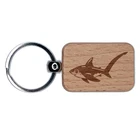 Adorable Thresher Shark Engraved Wood Rectangle Keychain Tag Charm