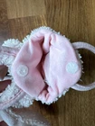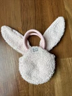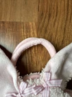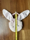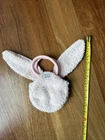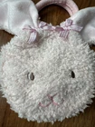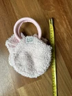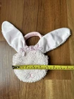 A beautiful pink plush bunny purse with a middle compartment and carrying handles. 8” tall handle to base and 5” wide. Hook and loop closure. Fuzzy body and super soft ears, gingham bows, embroidered face. Excellent condition and Very nice. Non smoking very clean home.