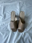 Adrienne Vittadini Albi women's tan open toe wedge heels are perfect for any occasion. These shoes have a slip-on closure and a round toe shape. The outsole material is manmade leather, and the upper material is leather. The heel style is a wedge, and the pump has a high heel height of 3-3.9 inches. These beautiful shoes are available in size 10M and have a solid pattern. The Adrienne Vittadini Albi pumps are not vintage and have not been customized. They are the perfect addition to any wardrobe and are ideal for women who love to dress up. These shoes are manufactured in China and are a great choice for any woman who wants to look stylish and elegant.