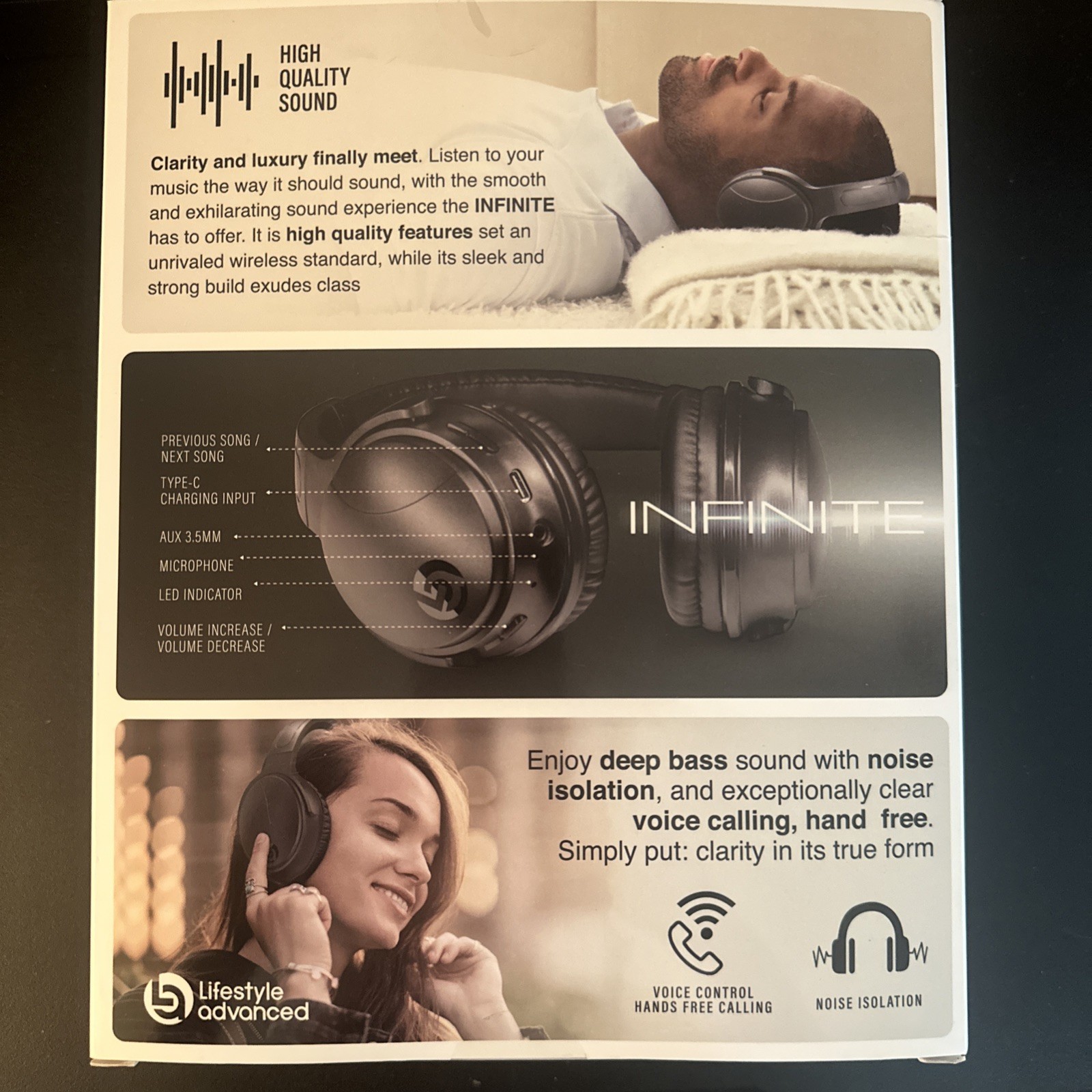 The Lifestyle Advanced Infinite High Definition Wireless Noise Isolation Headphones are a sleek and advanced option for those seeking high-quality sound in a portable and convenient form. With a stylish headband design and comfortable over-ear fit, these headphones provide excellent noise isolation for a truly immersive listening experience. The built-in microphone and wireless Bluetooth technology allow for hands-free calls and easy connectivity to various devices. The black color and modern design make these headphones a fashionable choice for tech-savvy individuals looking for top-notch audio performance.