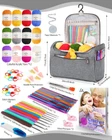 Crochet Kit for Beginners Adult and , 77pcs Crochet Kit with Everything Include 9pcs Colorful Crochet Hooks Ergonomic Soft Grip for Arthritic Hands, 14pcs Multicolor Aluminum Crochet Hooks Knitting Needles, 12 Colors Colorful Acrylic Yarn Balls for Crochet Knitting Crafts, Metal tapestry needles, Practical Crochet Storage Bag & Accessories, Gift for Crochet and Knitting Lovers Beginners Crochet Kit includes: 20 x practical stitch markers 12 x colorful acrylic yarn balls 14 x aluminum crochet needles 9 x ergonomic crochet hooks 10 x Metal tapestry needles in little carrying tube 6 x Point Protectors 2 x pom pom makers 1 x tape measure 1 x scissors 1 x instruction booklet 1 x storage bag 9 crochet hooks with soft grip complete sizes: 2.0mm / 2.5mm / 3.0mm / 3.5mm / 4.0mm / 4.5mm / 5.0mm / 5.5mm / 6.0mm 14 Aluminum Crochet Hooks Knitting Needles sizes: 2.0mm / 2.5mm / 3.0mm / 3.5mm / 4.0mm / 4.5mm / 5.0mm / 5.5mm / 6.0mm / 6.5mm / 7.0mm / 8.0mm / 9.0mm / 10.0mm The crochet size is marked on the handle, so you can easily distinguish it and pick the you need. Multifunctional Storage Bag: Not only can crochet tools, but also can toiletries and storage items. A great starter kit for anyone interested in crochet. You can start to learn how to crochet and enjoy your crochet journey as soon as you receive it. GOOD KIT for CROCHETER: 14pcs aluminum knitting needles and 9pcs ergonomic crochet hooks,12pcs different colors yarns, 20pcs stitch markers, 9pcs metal tapestry needles,6pcs point protectors,tape measure, scissors, pom pom maker, crocheting instruction booklet and crochet tote bag. Crochet kit for either new crocheter, or even someone just looking to get a good value to expand their crochet hook library, as well as other useful crochet notions & tools. STEP-BY-STEP INSTRUCTION: Aeelike crochet starter kit comes with instruction booklet of basic stitches and information for beginners or anyone needing a refresher. Great collection of colors and different sizes of hooks, include a size guide to help you choose the correct hook for your yarn! 23pcs CROCHET HOOKS: The soft handle ergonomic hooks come in the sizes 2.0mm 2.5mm 3.0mm 3.5mm 4.0mm 4.5mm 5.0mm 5.5mm 6.0mm, and the metal knitting needles come in the sizes 2.0 2.5 3.0 3.5 4.0 4.5 5.0 5.5 6.0 6.5 7.0 8.0 9.0 10.0mm. Aeelike crochet kit gives you enough sizes to work any yarn from fingerling (1 gauge) to super bulky yarn (6 gauge), meaning you could complete 99% of the projects you could ever want to do just with this set of hooks alone. MULTICOLORED ACRYLIC YARN: Beginner crochet kit with 12pcs different colors yarns 655 Yards ( 10.56 oz) in total, the variety of yarn colors gives enough to practice. Then you can creative and crochet plushies, trinkets, handbags, hats, scarves, gloves, shoes, shawls, blankets etc. The portable bag will organize all your crochet supplies neatly in place. Great for traveling / home with projects. GREAT GIFT for ANYONE: Crocheting is a wonderful and enjoyable hobby that popular craft among people of all ages around the world. This crochet set with everything perfect to anyone who is starting to become interested in learning to crochet. Crochet starter kit is an ideal gift for your family and yourself, warm and intimate!