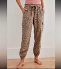 Aerie Animal Print Linen Blend Jogger Pants M Pull On Cargo Pockets Boho Trendy