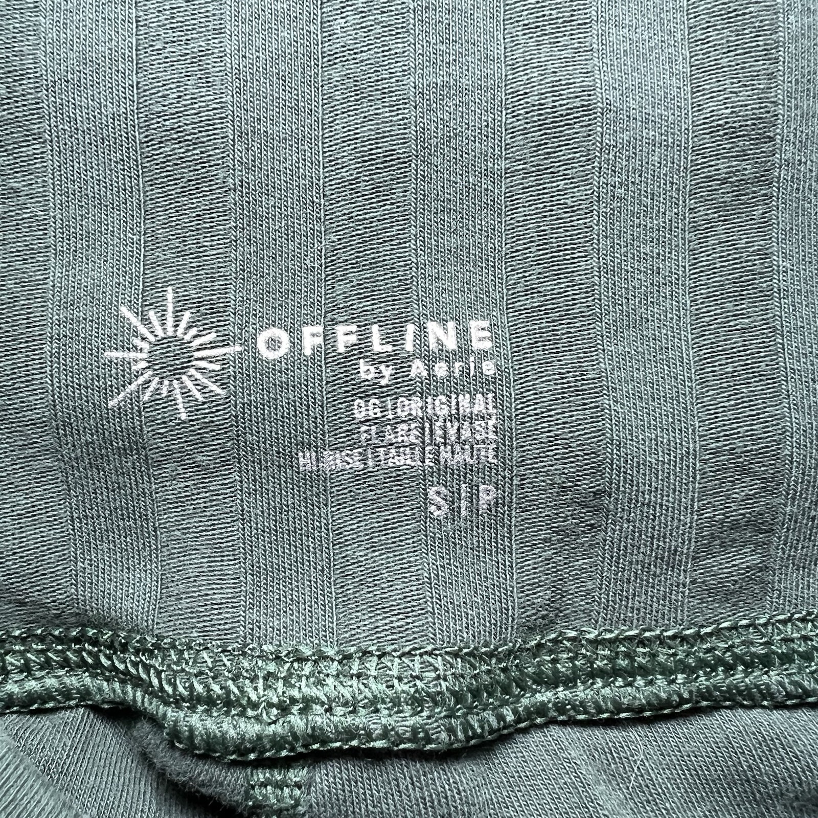 Offline by Aerie OG Groove Ribbed Flare Legging, Green, Women's Small. Waist: 22" Inseam: 32" Rise: 10.5" Pre-owned. Excellent condition. No rips, stains, holes or pulls.