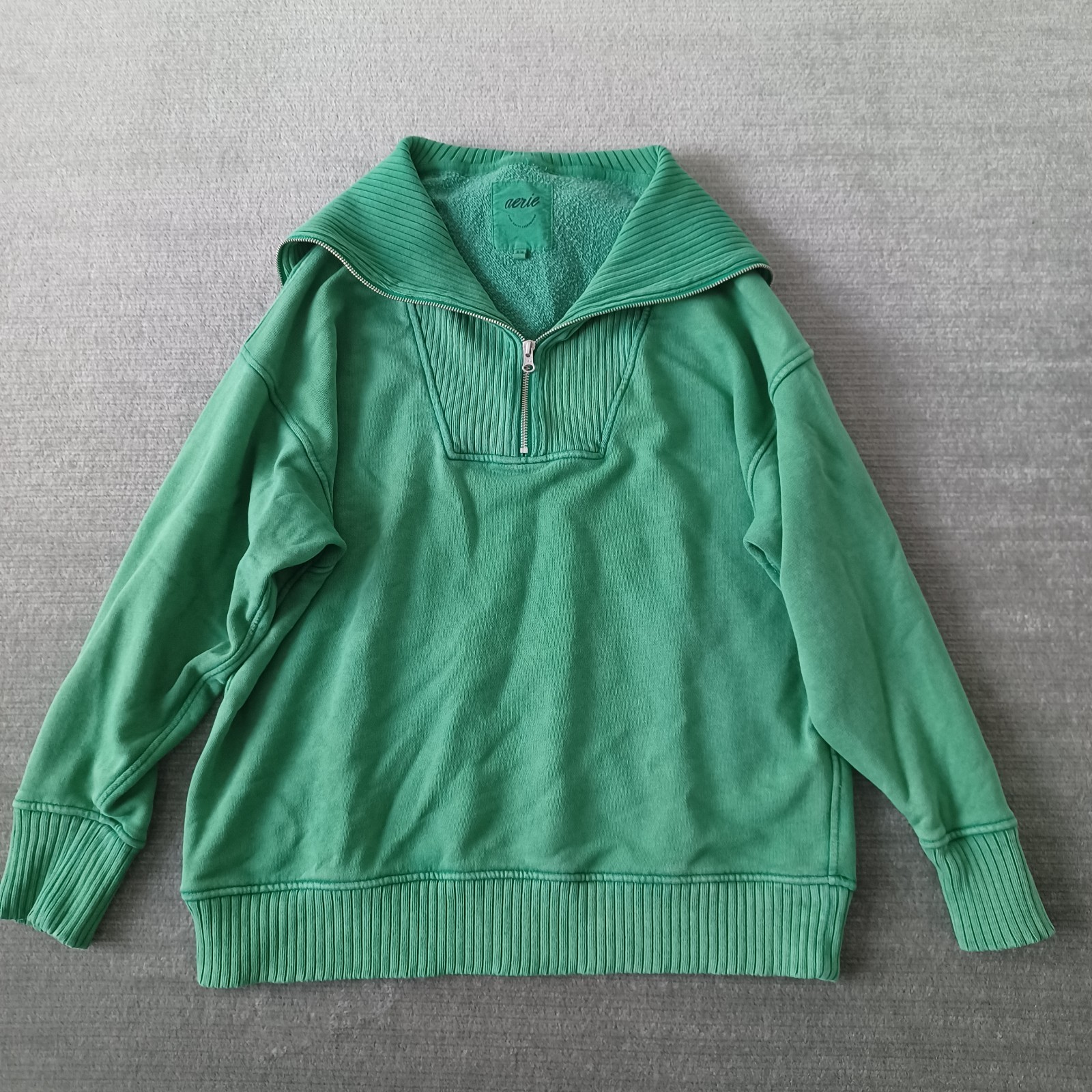 Aerie Sweater Women M Green 1/4 Zip Casual Crew Oversized Collar Boyfriend Overall good used condition. No Flaws.