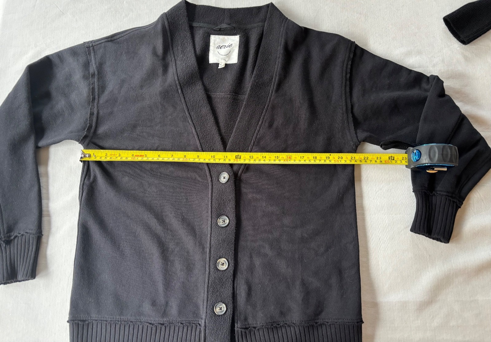Aerie Womens Fleece Cardigan Sweater Size Small Black Button Up Academia Casual. Condition is Pre-owned - Good. Shipped with USPS Ground Advantage.
